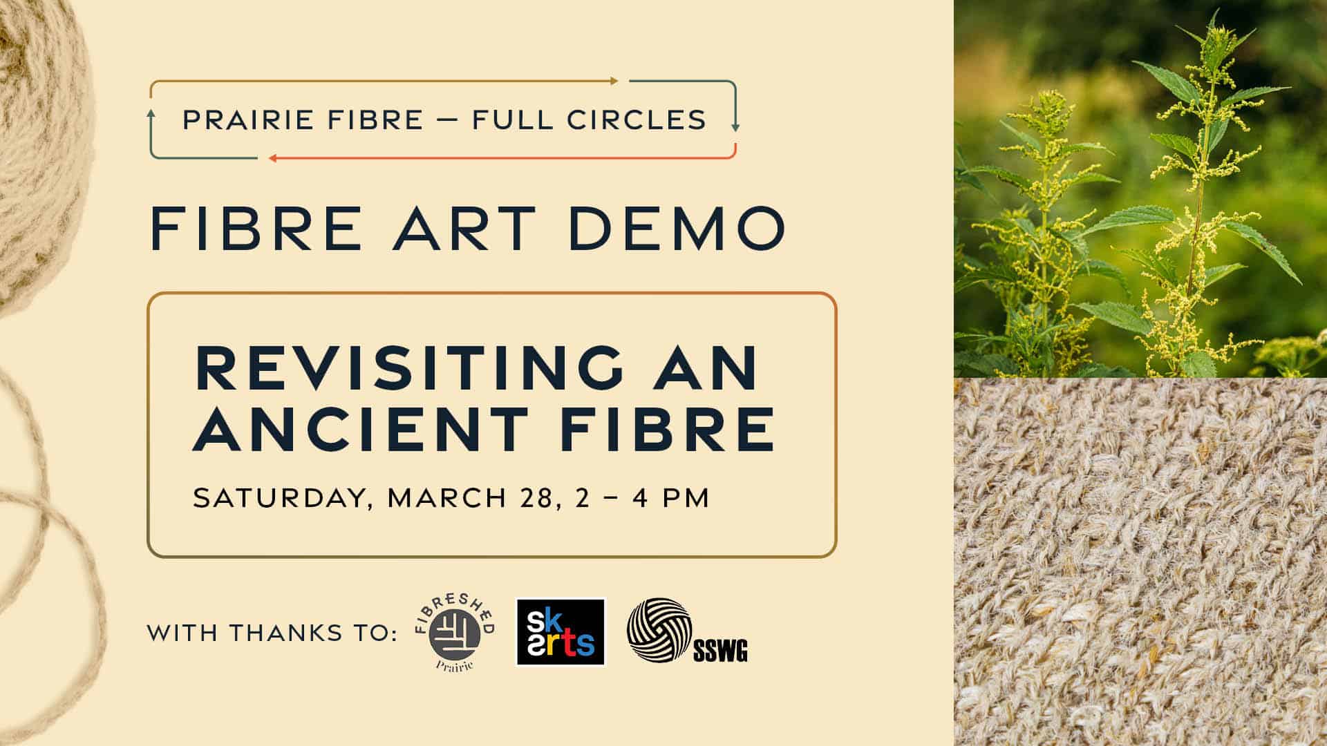 Join us at the Saskatchewan Craft Council gallery for free drop-in demonstrations and discussions about fibre arts and the many ways plant and animal fibre can be processed, transformed, and made anew. Meet the artists and artisans in the exhibition and learn more about the textiles that do so much for us!