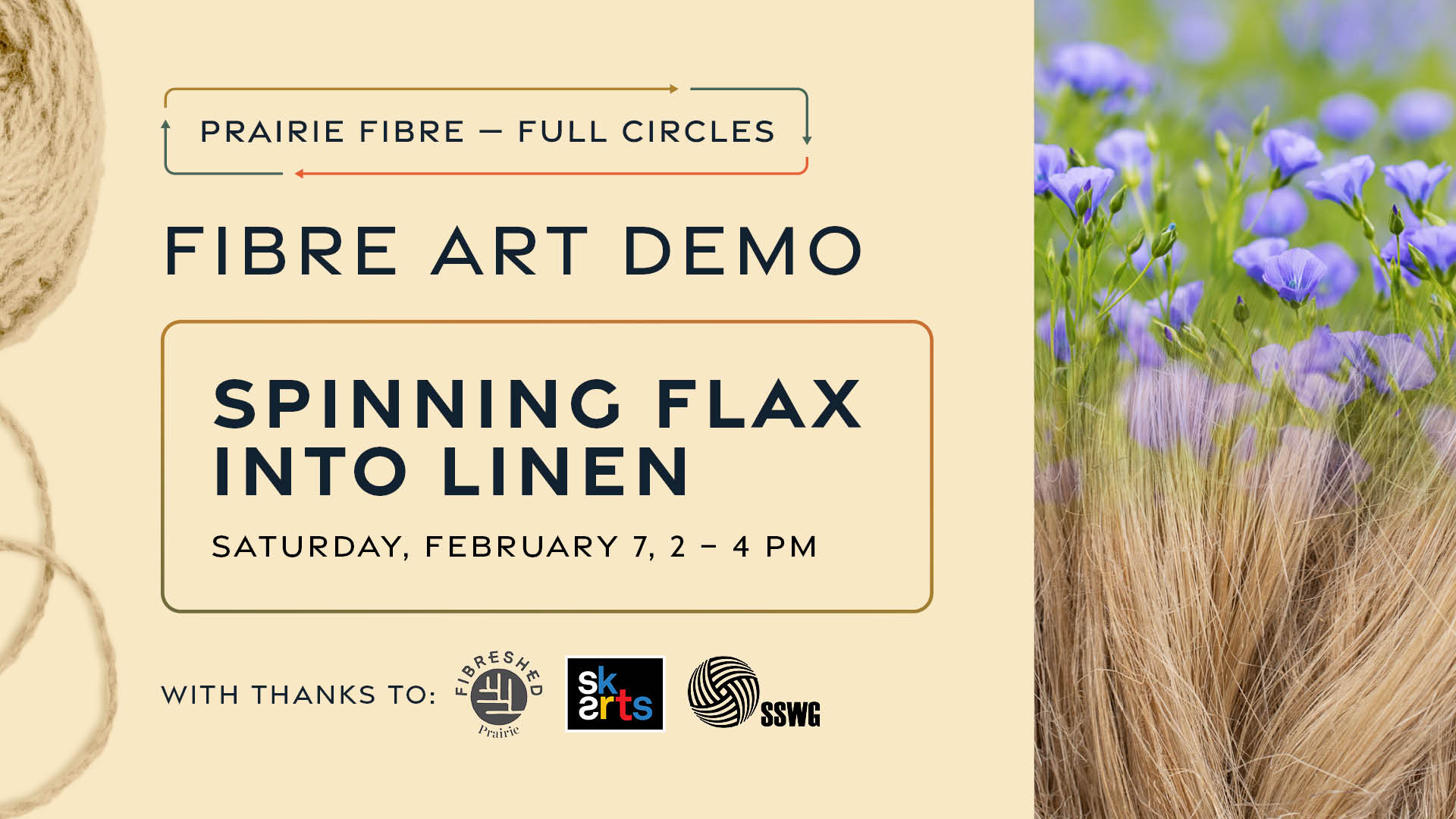 Spinning Flax into Linen with Diana Bekkaoui Saturday February 7th, 2 – 4 PM A discussion and demonstration of spinning several varieties of flax. See the way that flax fibres are processed into linen from Diana Bekkaoui, candidate master spinner (Olds College Master Spinners Program). Join us at the Saskatchewan Craft Council gallery for free drop-in demonstrations and […]