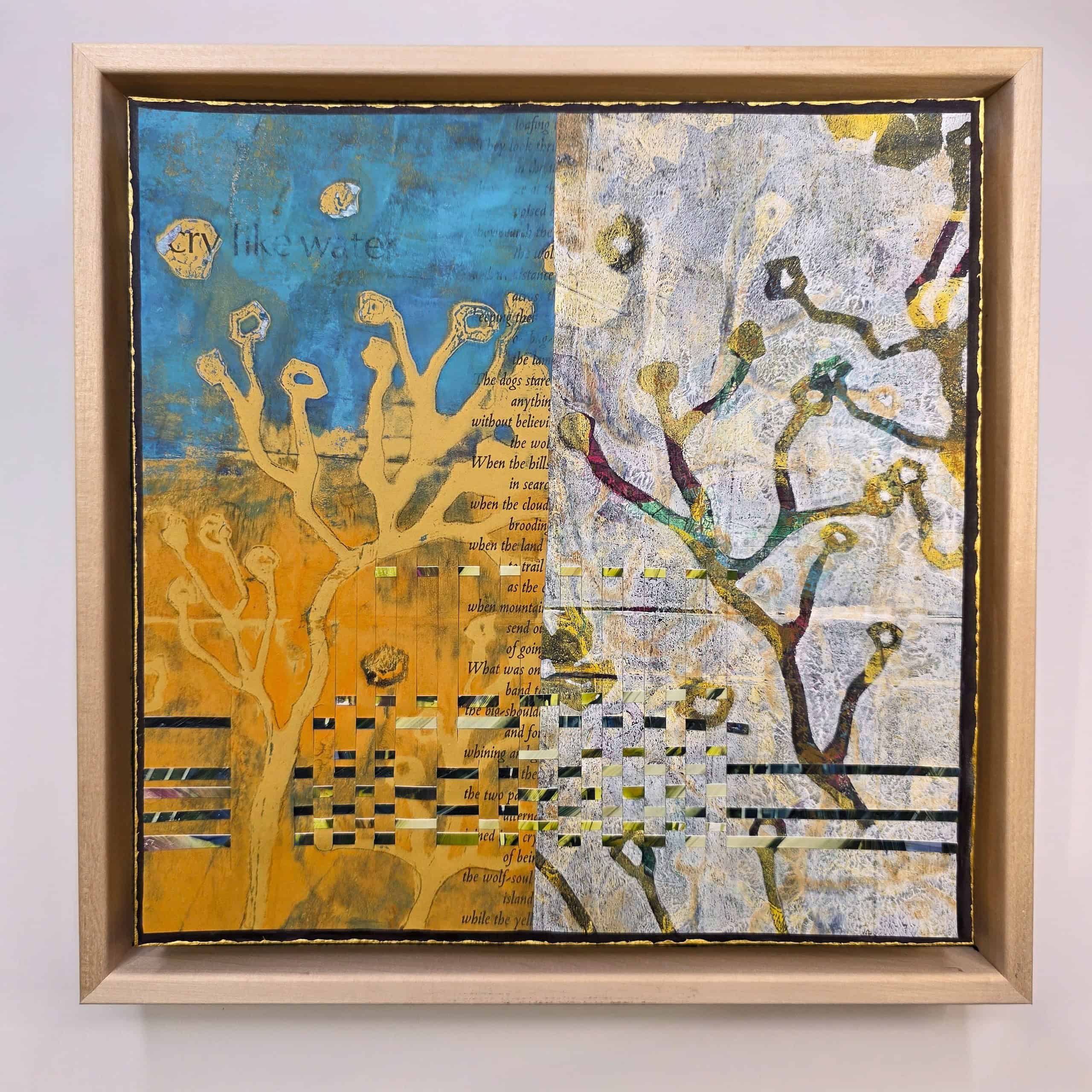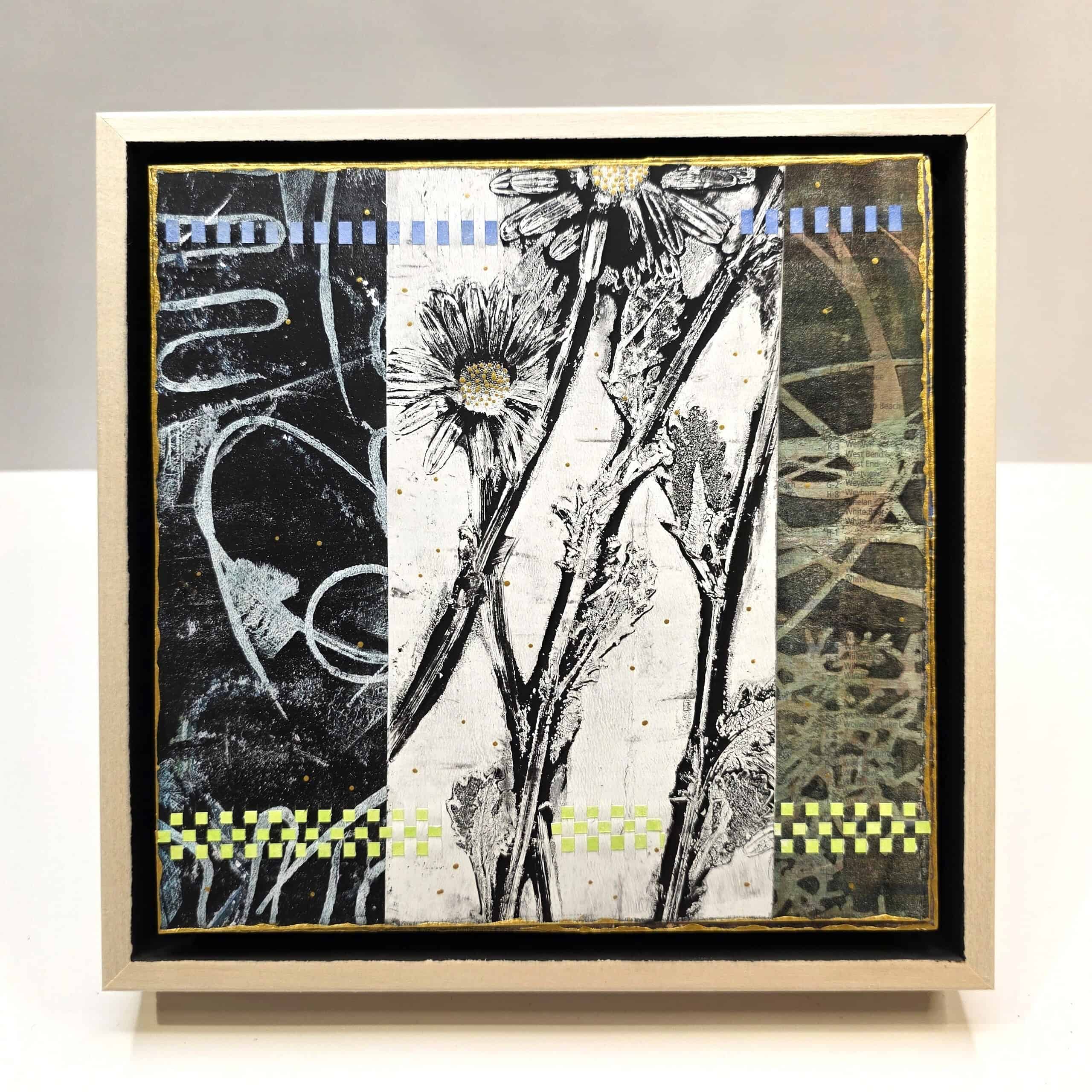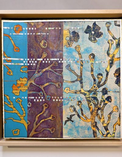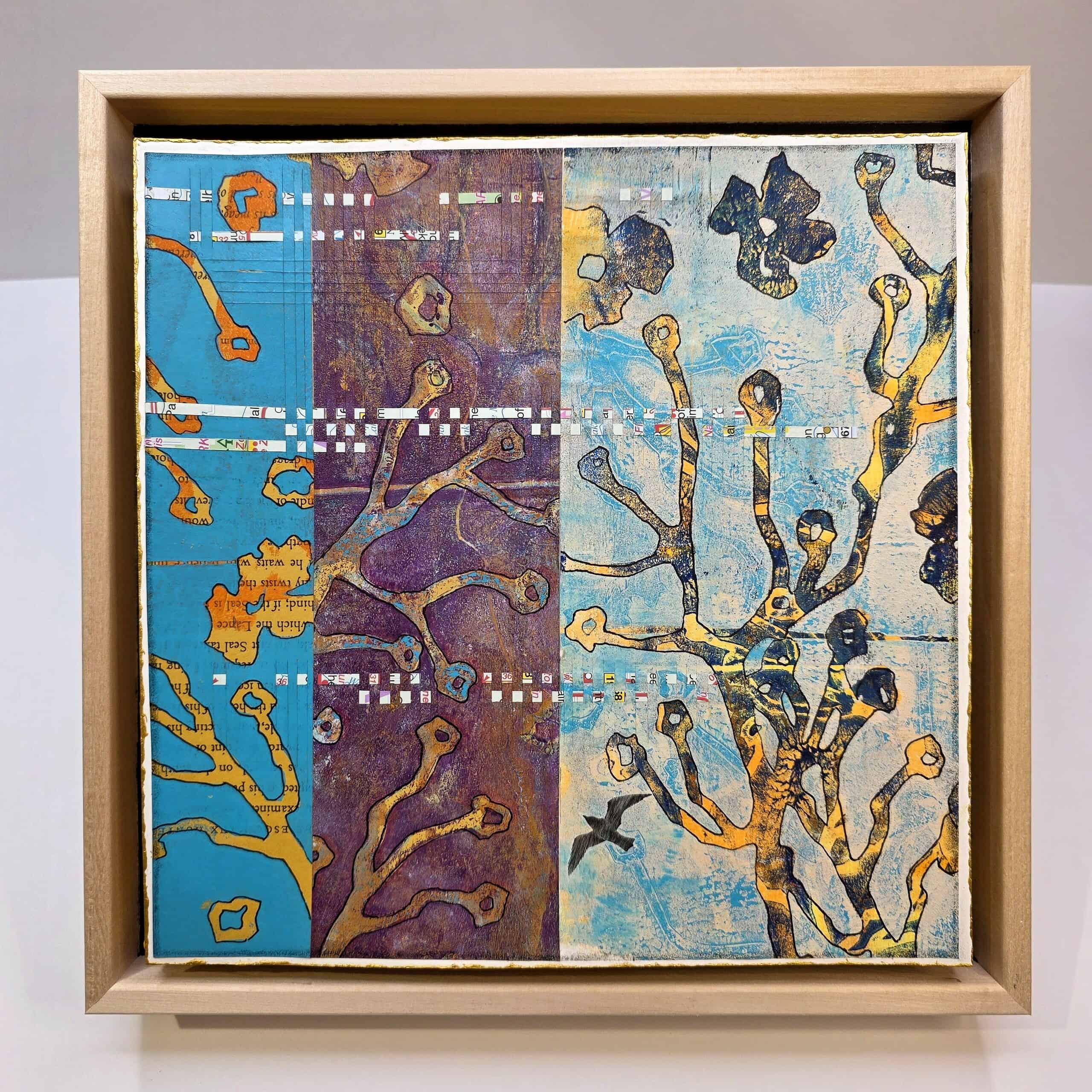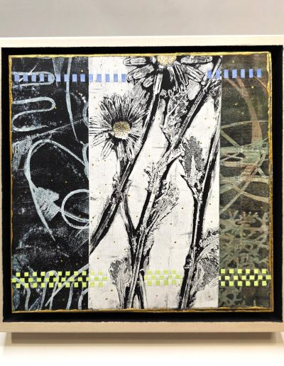 “I use a variety of printmaking methods in creating my monoprints. A current favourite is monoprints created on a gel-based printing plate. Gel-based printing plates are highly responsive to so many techniques and types of media and generate something entirely original with every image pulled from the plate. I find it quite a thrilling process.”