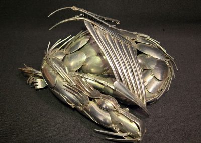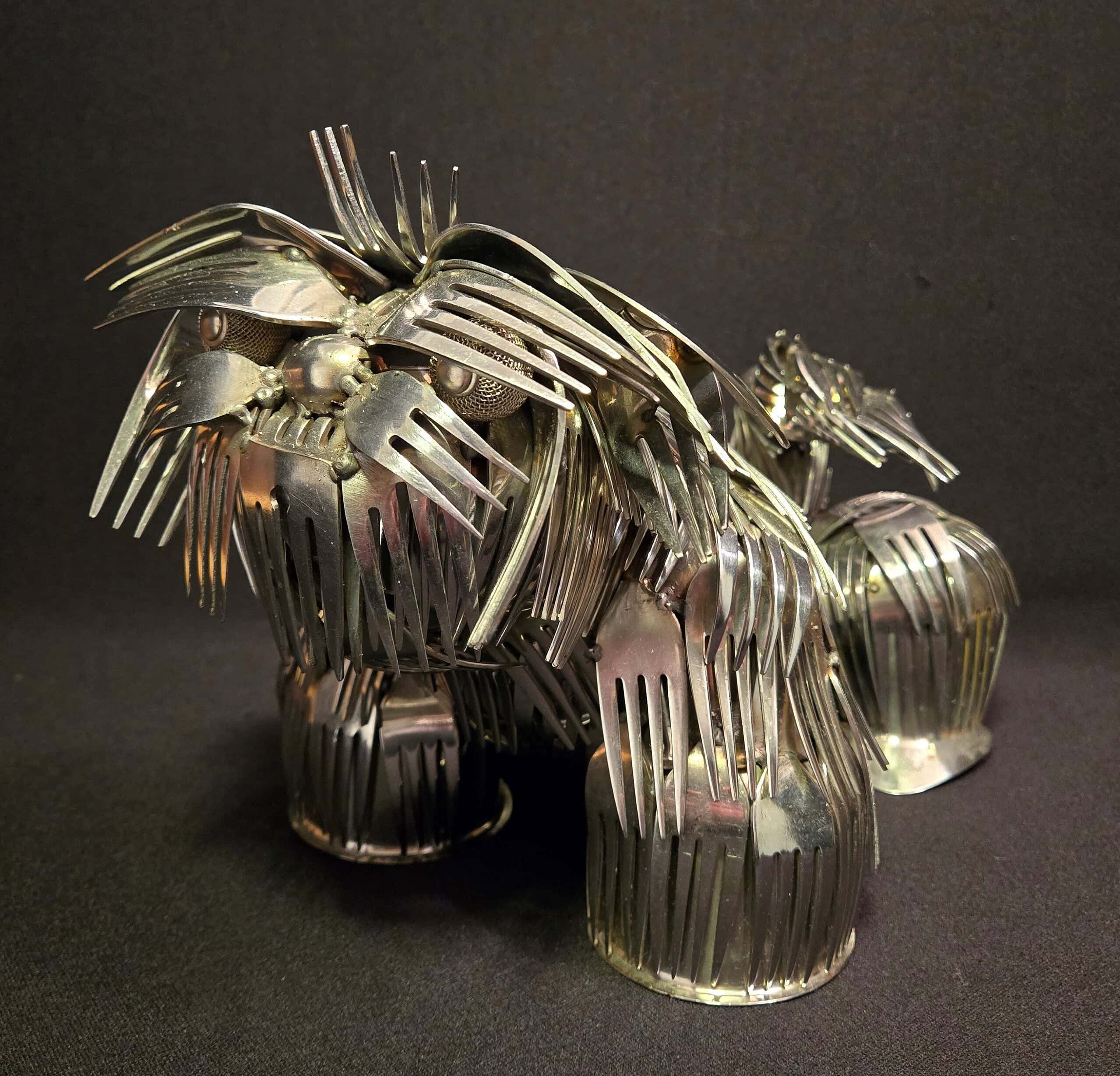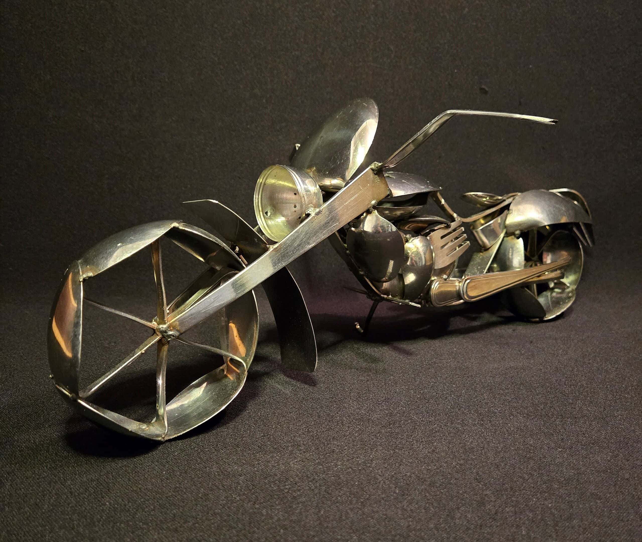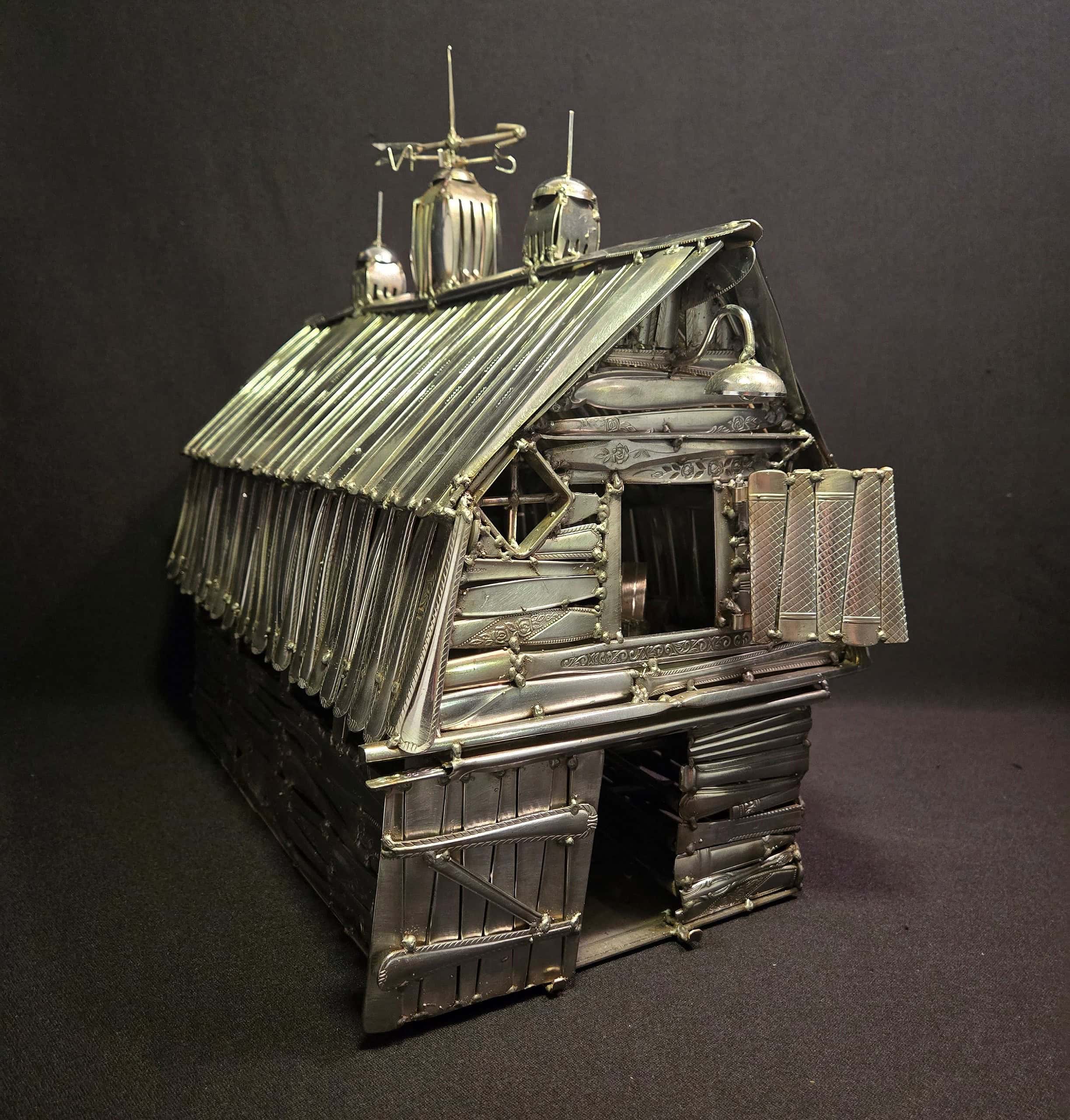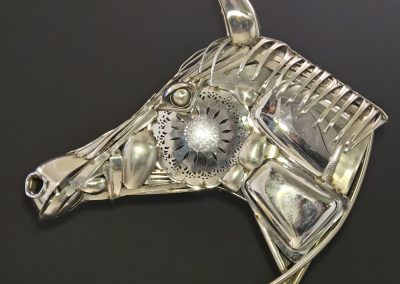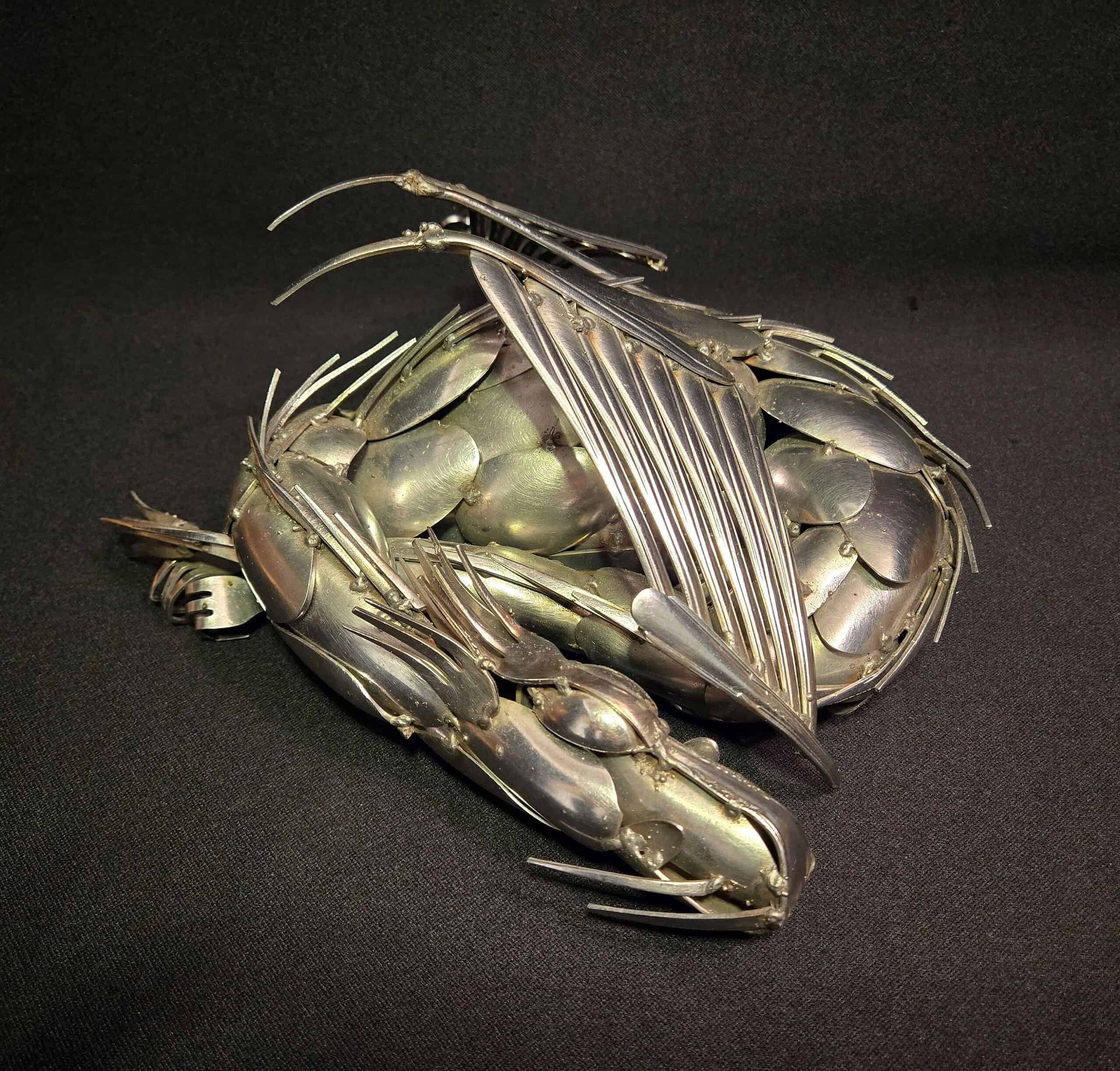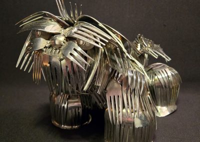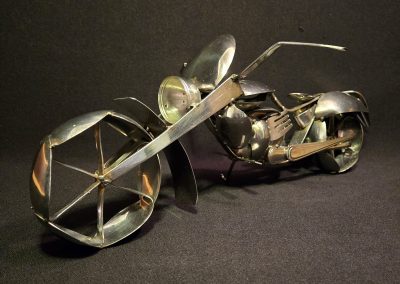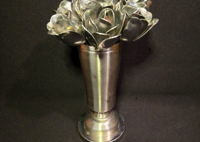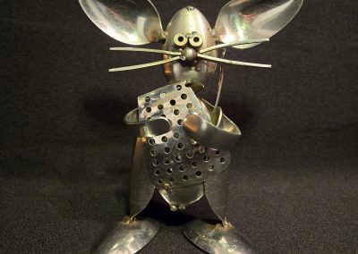 Ken Chrun began creating metal art in 2016. Working exclusively with recycled materials, Ken sources everything from garage sales, thrift stores, and generous donations—never purchasing materials new, with the exception of welding supplies. Each piece is bent, shaped, and cut entirely by hand, making every creation truly one of a kind. The stainless steel components are MIG-welded using stainless wire, ensuring the work is durable enough for both indoor and outdoor display without the risk of rust.