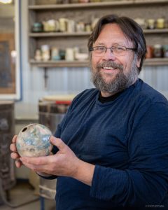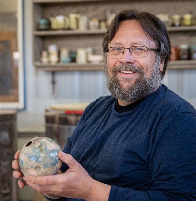 Ken Wilkinson began working in pottery in 1974, the year before the SCC was founded. He is known as one of the province’s best throwers, creating exquisite bowls, teapots, and goblets, as well as producing larger pieces such as ceramic tables and pedestals. Ken served on the SCC’s Board of Directors from 1992 to 1996 and again from 2003 to 2009. Ken was awarded an Honorary Lifetime Membership in 2015, and took part in our Wholesale Program for several years. Many visitors may not know this, but the ceramic door frame in SCC Fine Craft Shop was originally installed as part of an exhibition by Ken and fellow potter Judy Tryon in 2007. It has remained a unique part of our space ever since.