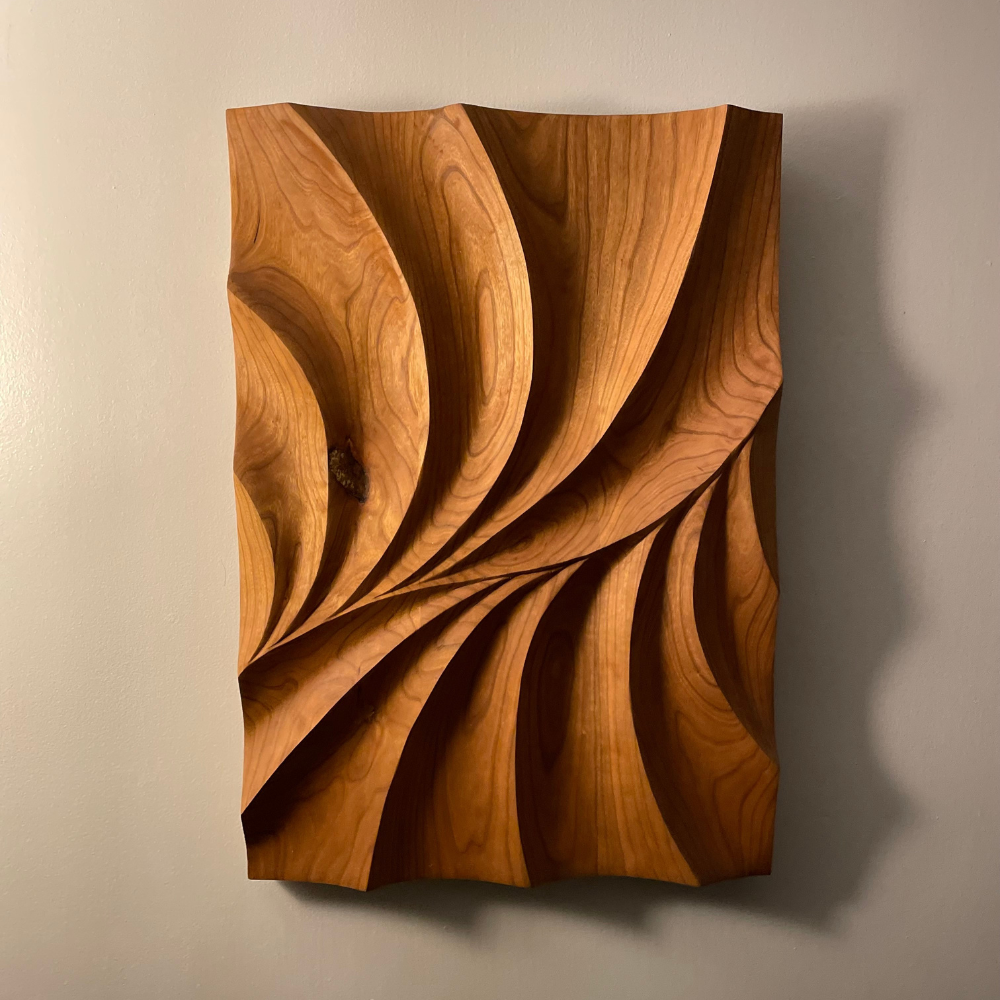 Norm Lepage is a Saskatchewan-based woodcarver and the artist behind Wood Geek Studio, where fine craftsmanship, curiosity, and contemporary design come together. Working primarily with hardwoods such as cherry and poplar, Lepage creates sculptural relief carvings that transform wood into expressive surfaces defined by movement, rhythm, and light. His practice bridges traditional woodworking techniques with a modern sculptural sensibility, resulting in work that feels both grounded and innovative.