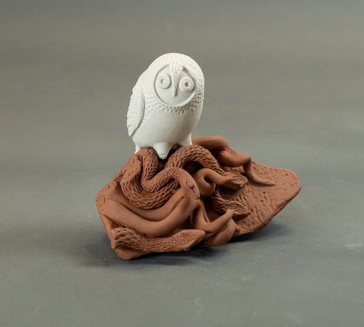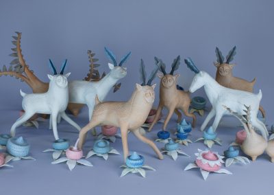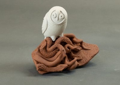 Stefanie’s work moves and evolves as much as her place of residence does. While her first clay home was with hand-built pottery, she is now setting down roots in the world of sculpture. Presently her focus is on figuration, the power of play, and the creation and interpretation of story.