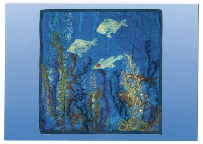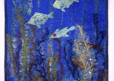 Susan gravitated to textiles from a natural fibres expertise in hand-spinning and weaving. Her fibre arts work in textiles reflects this earlier artwork by using surface embellishments to create 3-D texture.